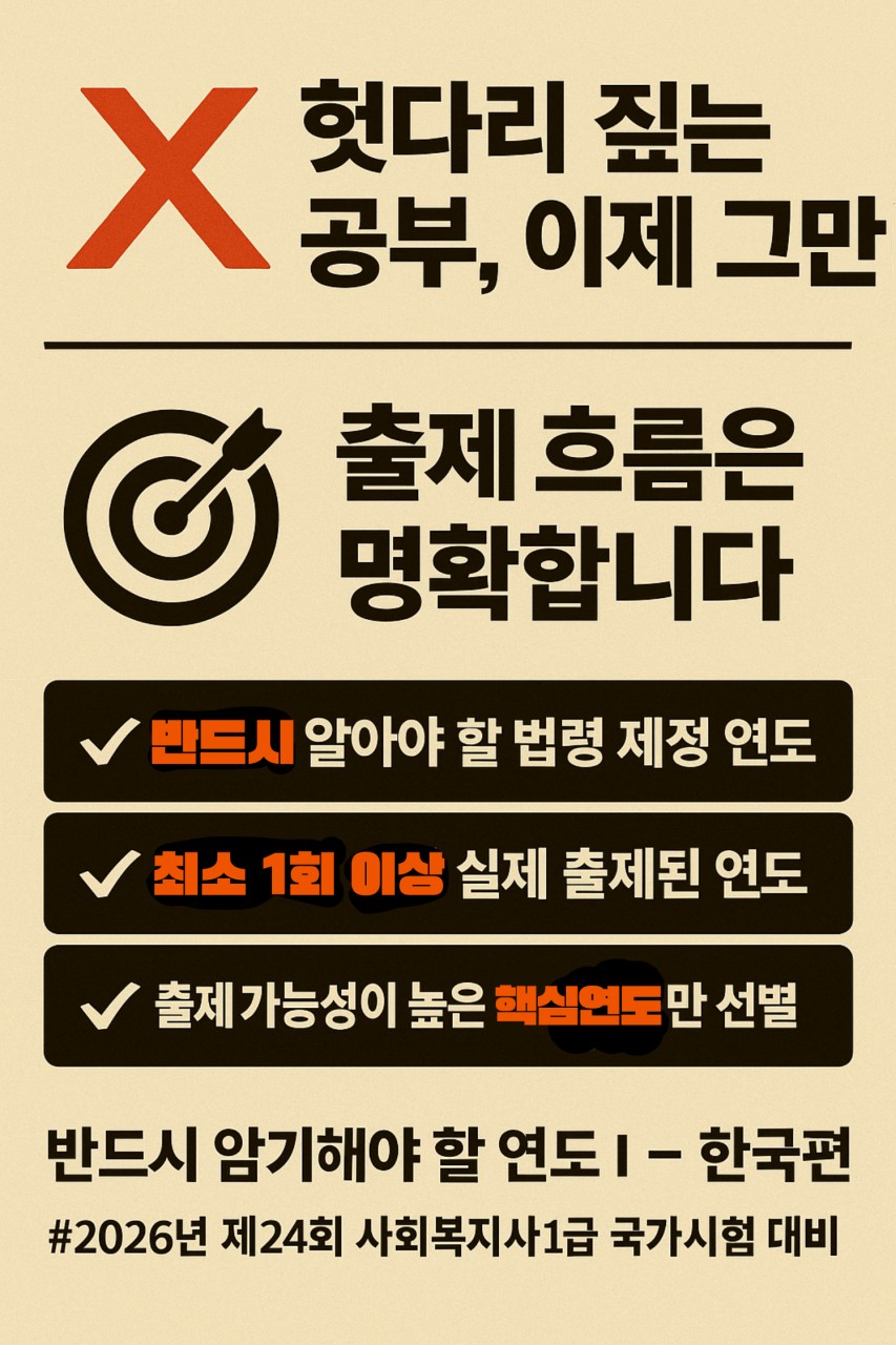 🎓 [2026 사회복지사 1급] 반드시 암기해야 할 연도 정리 특강 요약|한국편 + 5대 사회보험 강의자료 ↓↓↓↓ ❗ 이런 분은 꼭 보셔야 합니다 시험에 나올지도 모르는 ...