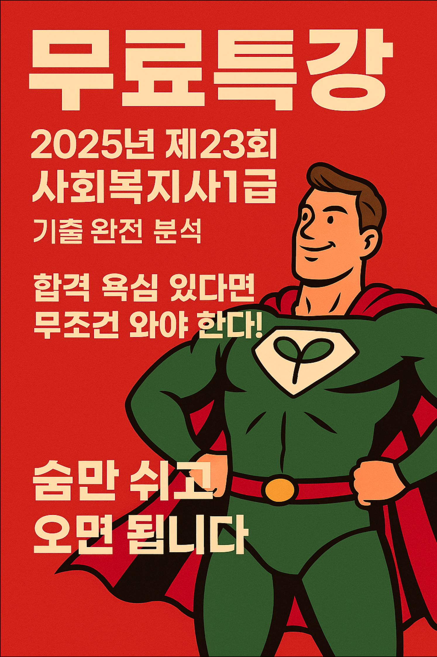 [무료특강] 2025년 제23회 사회복지사 1급 기출문제 심층해설 강의 – 숨만 쉬고 오세요! 🔥