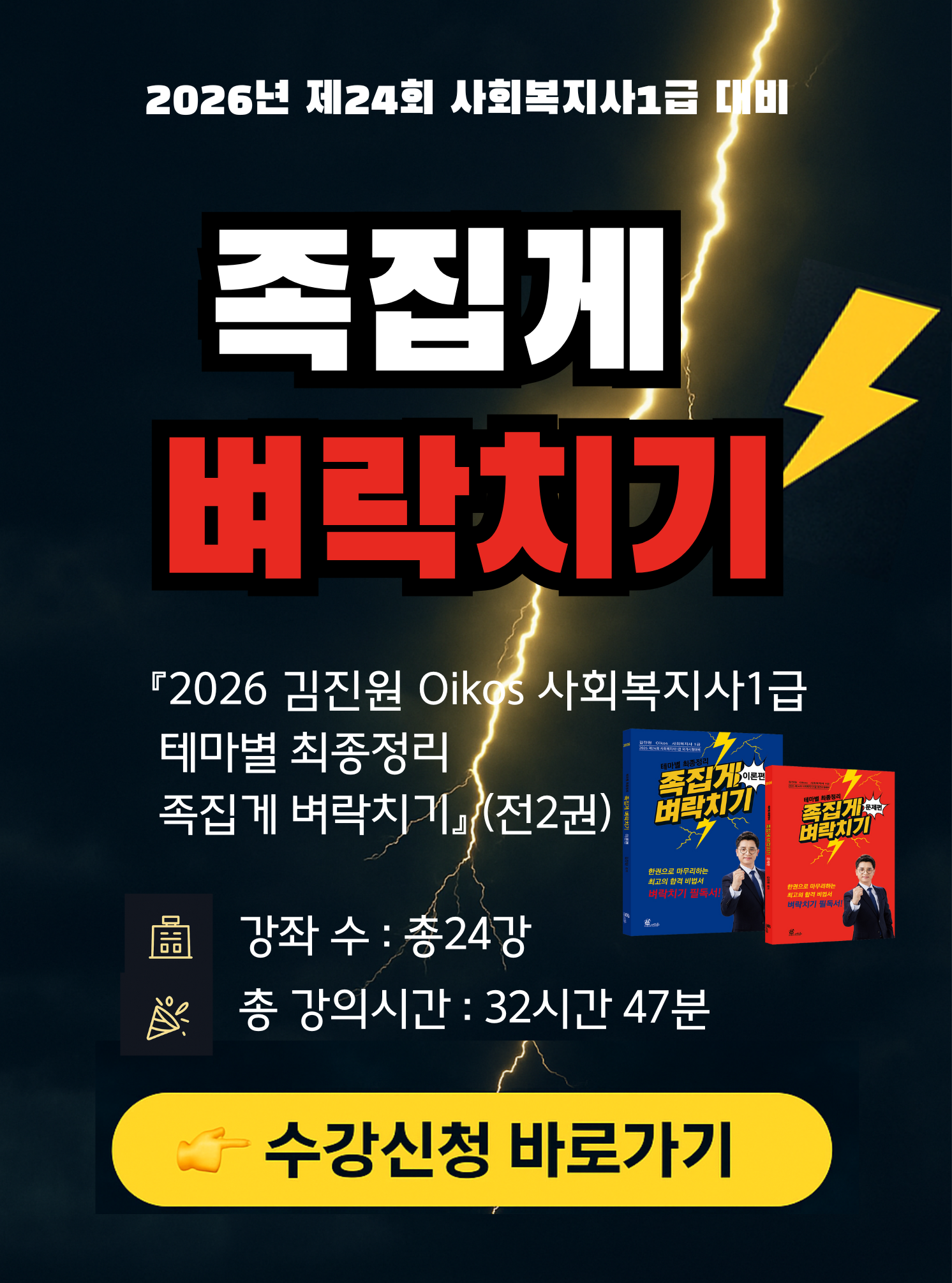 2026년 제24회 사회복지사 1급 국가시험 대비 족집게 벼락치기 강의(전2권) 가 드디어 완강되었습니다.
