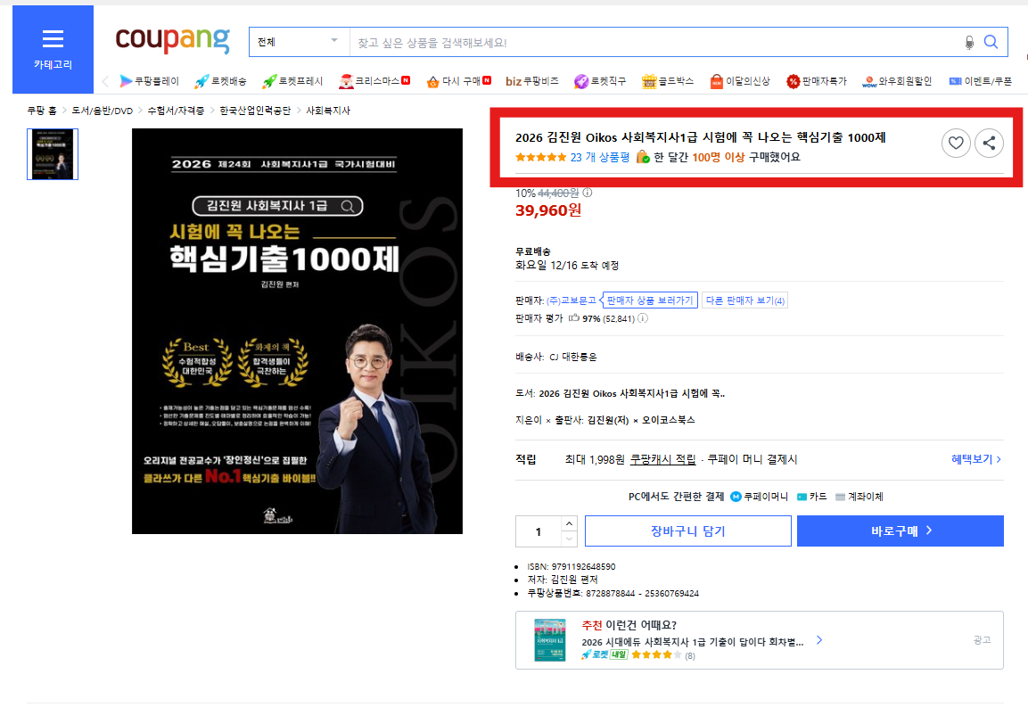 최근 많은 수험생들이 추천하는 오이코스 2026 김진원 사회복지사1급 핵심기출 1000제를 직접 살펴본 후기를 정리해봅니다.