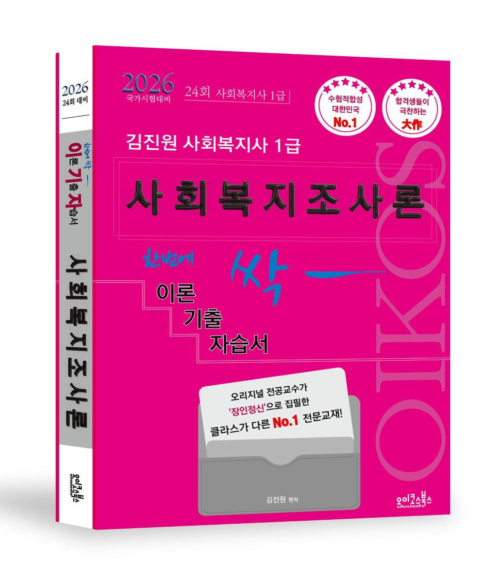 | 도서명 | 『2026 김진원 Oikos 사회복지사1급 한번에 싹 이론기출자습서 – 사회복지조사론』 |
